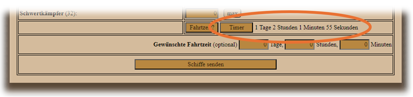 Man kann nun einen Timer laufen lassen. Er dient als Stütze beim Abschicken. Verlasst euch nicht zu 100% darauf und kontrolliert die Flotte.