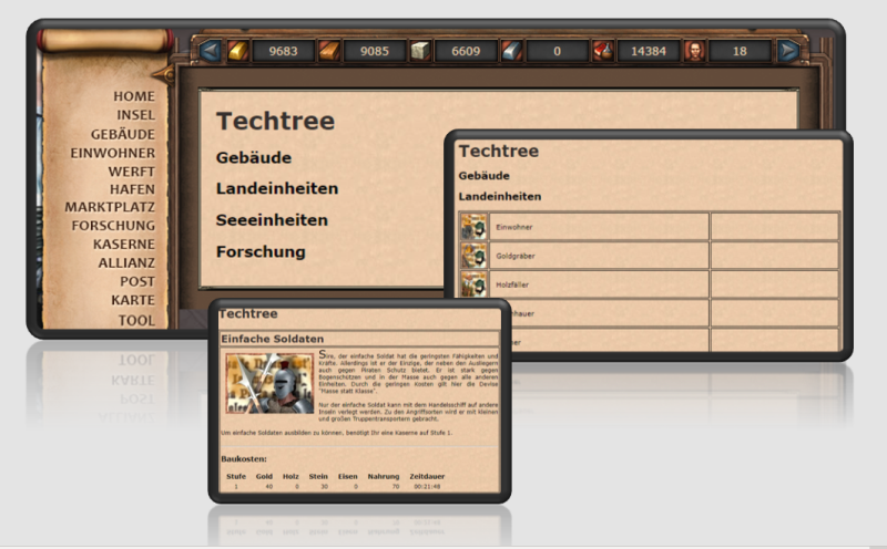 Hier gelangt über den Menüpunkt "Techtree" am unteren Ende der Seite dorthin und erfährt in gewohnter Art auch sofort ob Voraussetzungen noch nicht erfüllt sind. Oder über die entsprechende Bauoption.