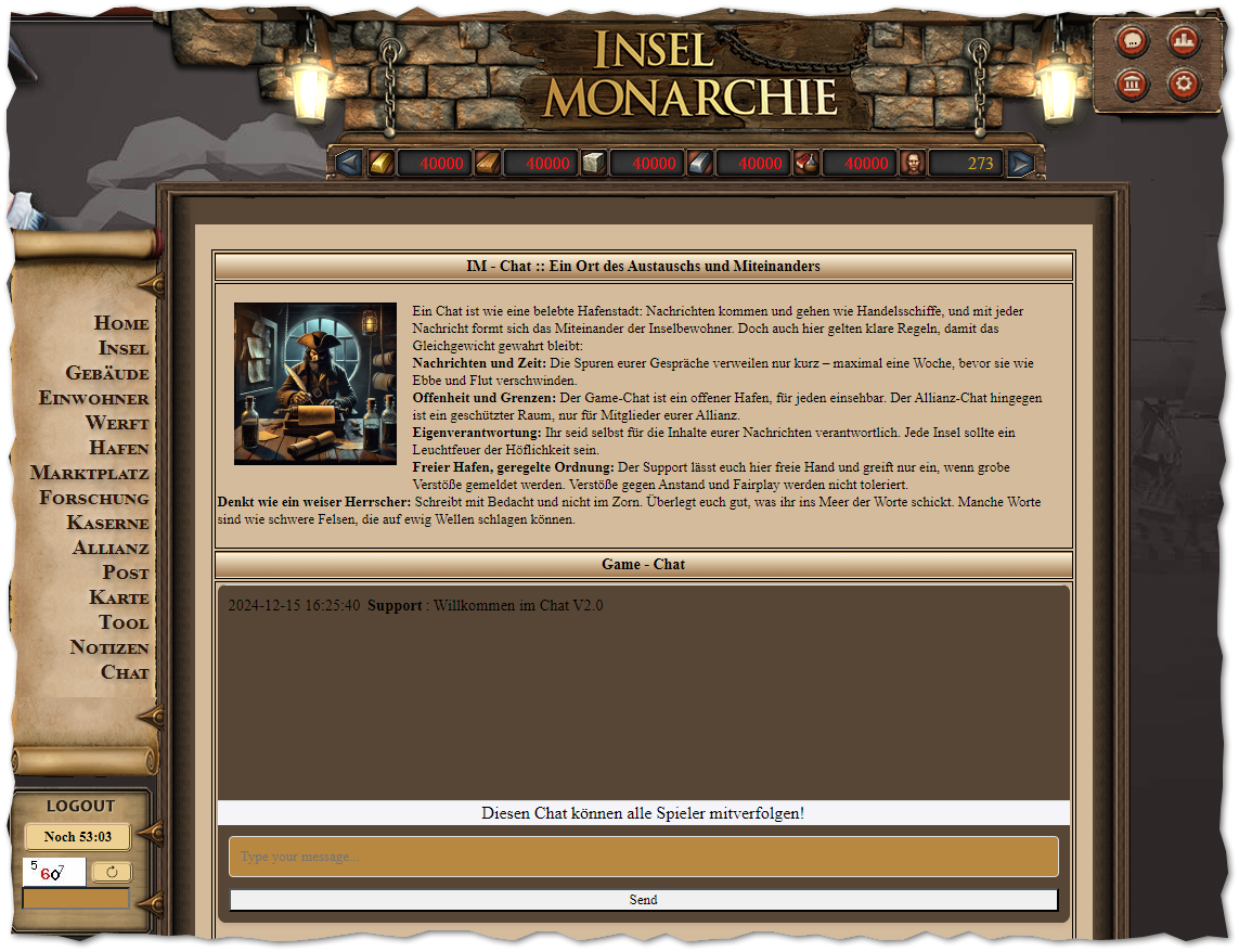 nach unserer Beta-Version des internen Chats, hat er nun seinen Platz gefunden. Wie von der Post bereits gewohnt, leuchtet es rechts im Menü bei neuen Nachrichten rot auf. Der Chat wird nach wie vor nicht aktiv vom Support überwacht. Sollte es zu einem Verstoß gegen den Anstand kommen, greifen wir natürlich ein.