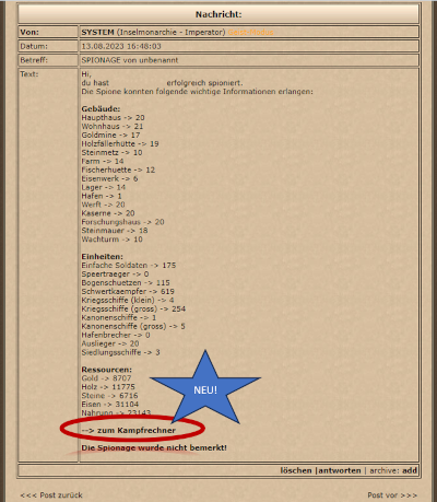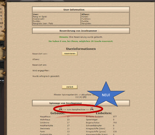 Auf Anregung von Mattbe ist es nun möglich, direkt aus dem Spiobericht oder aus der Inselansicht im Tool zum Kampfrechner zu gelangen.